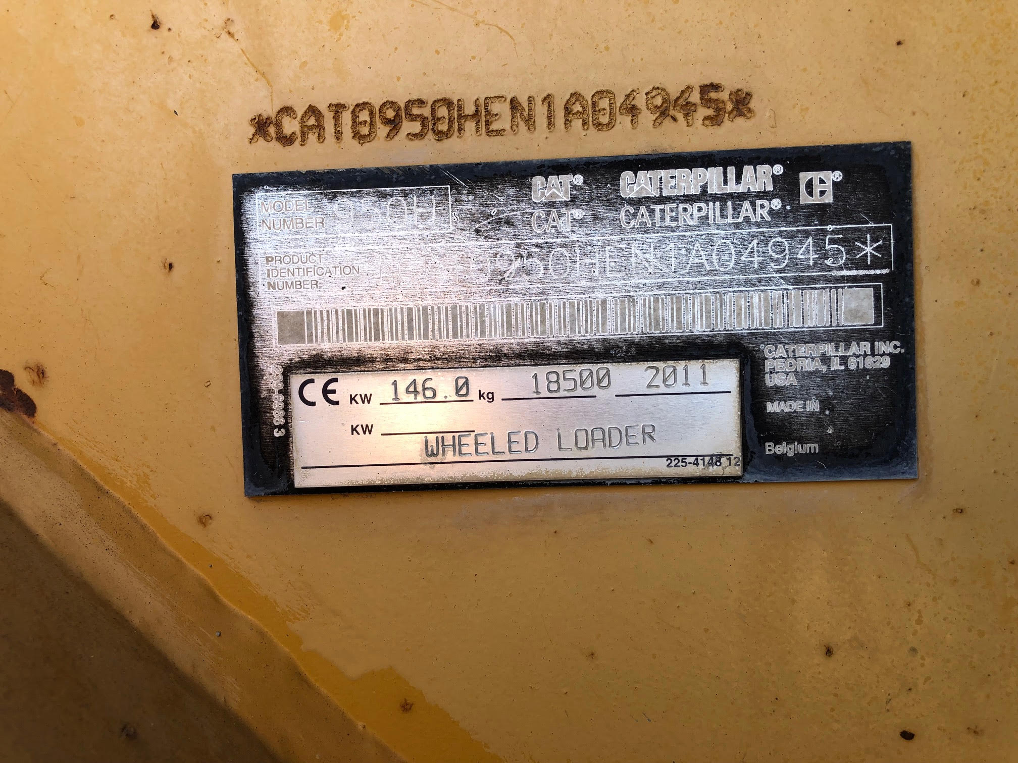 Incarcator frontal Caterpillar 950H din anul 2011, cu 17000 ore de functionare. Utilajul a fost achizitionat de nou de la reprezentanta CAT din Romania, a avut un singur proprietar.